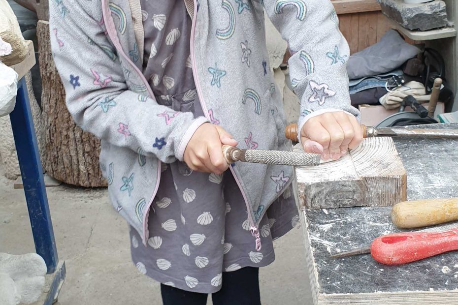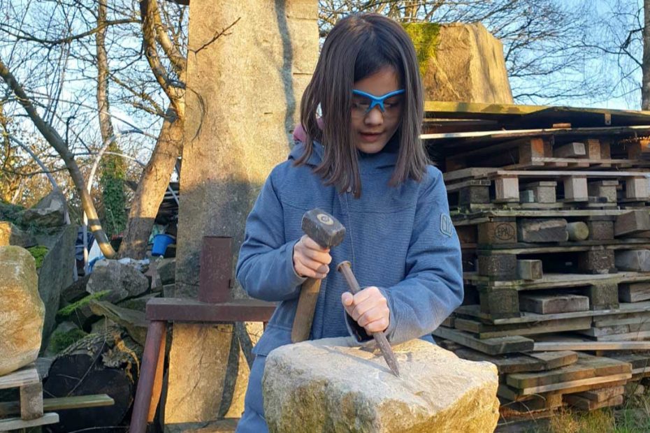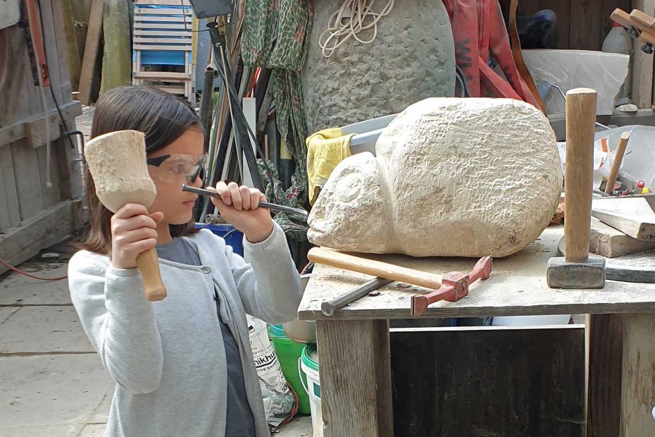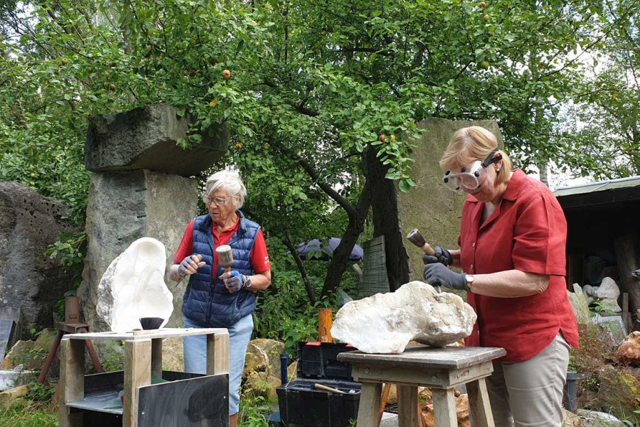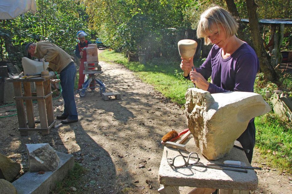 Neugierig auf den Prozess des Steinschlagens? Lust sich einzulassen? Mehr ist nicht erforderlich, um eine neue, tiefgehende, handfeste Erfahrung zu machen. Das Steinschlagen ist der ideale Einstieg in das plastische Arbeiten. Der Stein bringt Ihnen Widerstand entgegen, sperrt sich gegen schnelle Lösungen. Steinschlagen ist ein kreativer Prozess, zerstörerisch und befreiend zugleich. Der inneren Stimme folgen in der Zwiesprache mit dem Stein – den eigenen Rhythmus finden im Einklang mit seiner Form – das eigene kreative Potential entdecken beim Schlagen in Sand- und Kalkstein, Marmor und Granit.