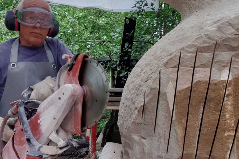 Stein ist für mich ein lebendiges Material, das eine respektvolle Annäherung verdient. Jedes Mal neu. Deshalb heißt mein Motto auch „Hau rein mit Liebe“. Meinen eigenen Rhythmus finden und die Sprache meiner eigenen künstlerischen Gestaltungskraft entwickeln heißt für mich, die Sprache des Steins zu verstehen und sprechen zu können, in Resonanz über das Begreifen zu begreifen, was Steinschlagen essentiell bedeutet.